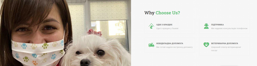 Наша клініка заснована у 2019 році та надає якісне обслуговування у сфері ветеринарних послуг. У нас дбайливий персонал, який забезпечує комфорт пацієнтам. Ми працюємо 24/7, щоб ви та ваші улюбленці отримали якісну допомогу незалежно від часу доби та дня тижня. У нас працюють лікарі загальної практики так і вузькі спеціалісти: дерматолог, хірург, гастроентеролог, ортопед, кардіолог, лікарі візуальної діагностики.